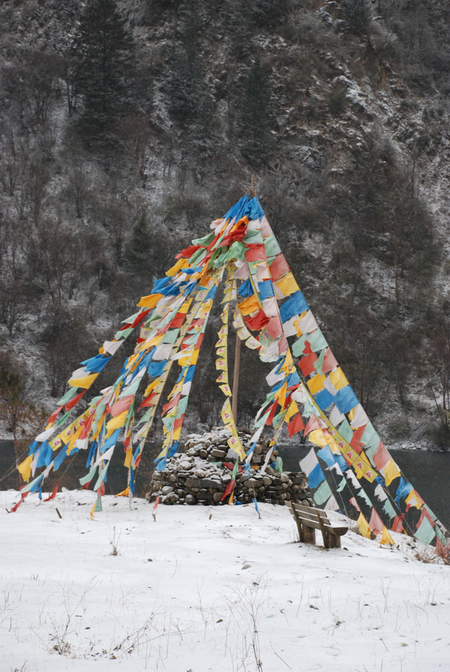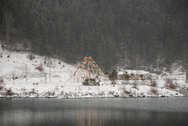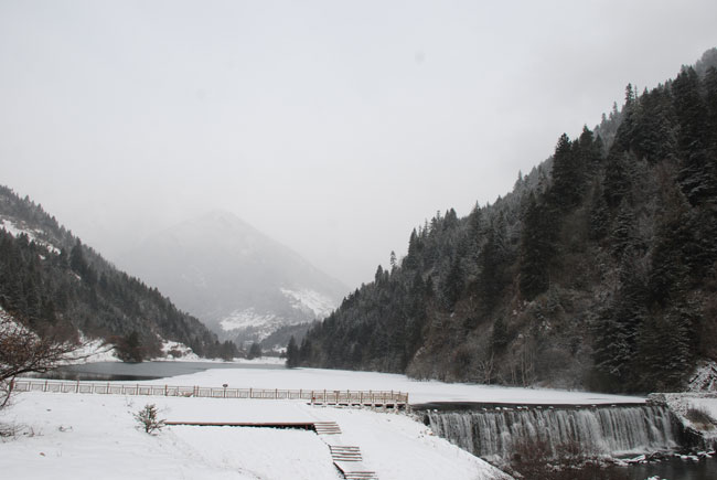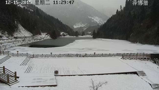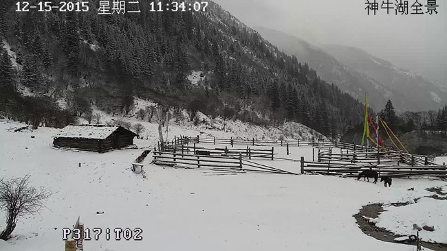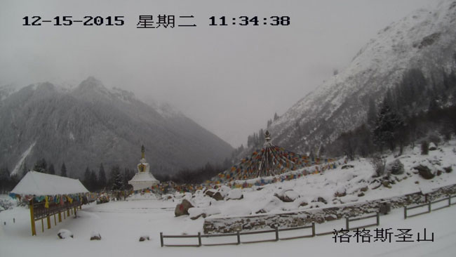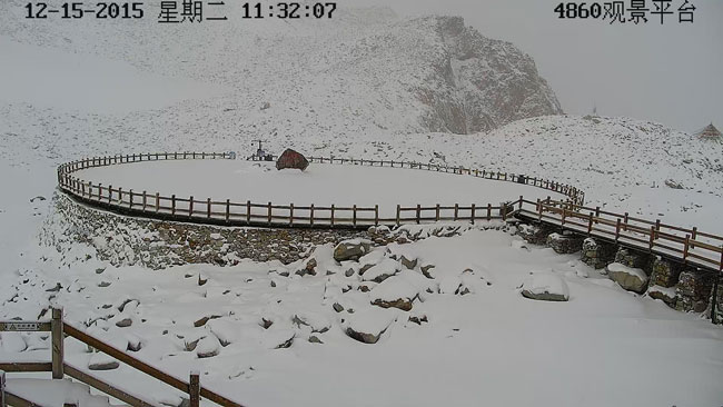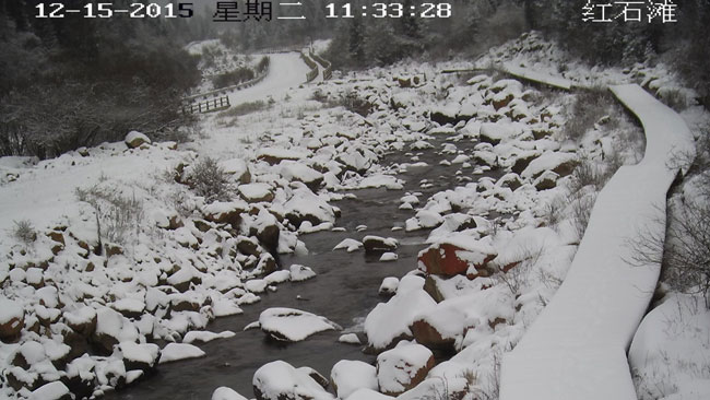 入冬以來,達(dá)古冰山景區(qū)時常大雪紛飛。14日傍晚,景區(qū)普降大雪,雪花漫天卷地落下來,一直持續(xù)到現(xiàn)在,猶如鵝毛一般,紛紛揚揚,輕輕地落在房頂上,落在草地上,落在山峰上,將整個景區(qū)裝扮成了一個粉妝玉砌的銀色王國,景色十分醉人。