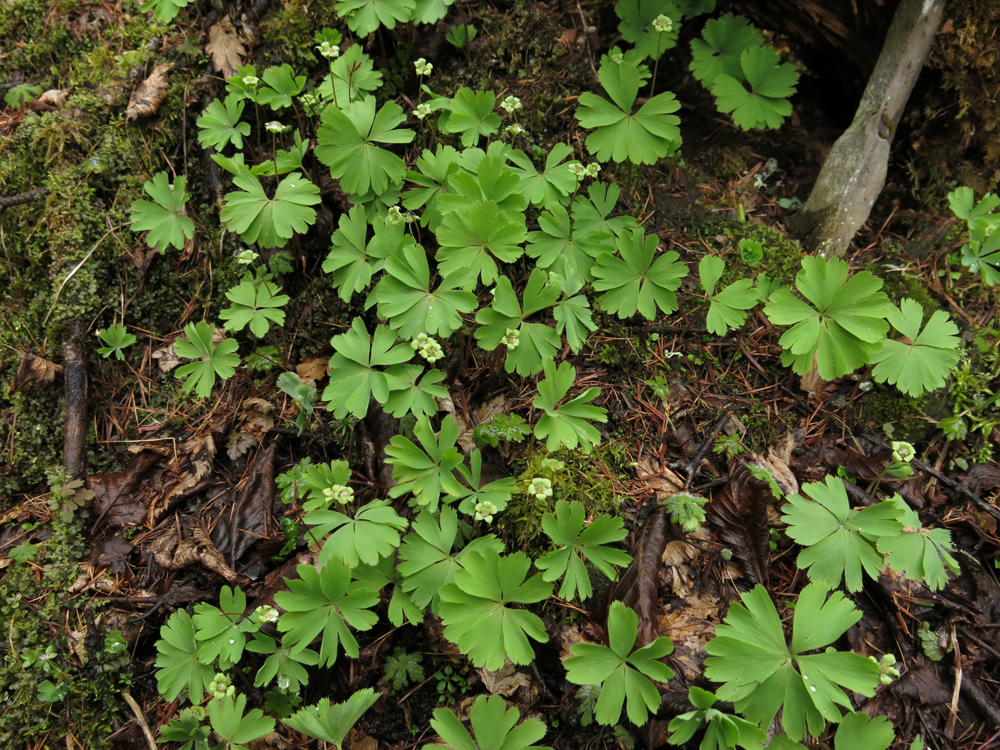 形態(tài)學(xué)特征:多年生小草本,無毛。根狀莖細長,自頂端芽中生出1葉和1條花草;芽鱗約3個,膜質(zhì),卵形,長4-7毫米。葉基生,有長柄,葉片心狀圓形,寬3.5-7厘米,五全裂,中、側(cè)全裂片三淺裂,最下面的全裂片不等二深裂,頂部邊緣有小牙齒,背面粉綠色。葉柄長5-11厘米。花草高7-12厘米。花直徑約8毫米。萼片(4-5-6(-7),淡綠色,卵形,長5-7.5毫米,頂端漸尖,退化雄蕊長1.6-2.1毫米;雄蕊長2-3毫米,花藥長約0.3.毫米;心皮長約1.4毫米,花柱與子房近等長。瘦果扁,狹倒披針形,長1-1.3厘米,寬約2.2毫米,宿存花柱長3.5-4毫米,向下反曲,種子狹橢圓球形,長約3毫米。