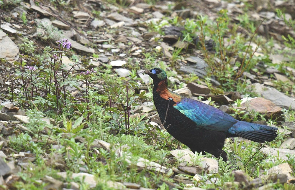 分布:綠尾虹雉,僅分布于中國青藏高原附近。棲息于林線以上海拔3000-5000米左右的高山草甸、灌叢和裸巖地帶,尤其喜歡多陡崖和巖石的高山灌叢和灌叢草甸,冬季常下到3000米左右的林緣灌叢地帶活動。