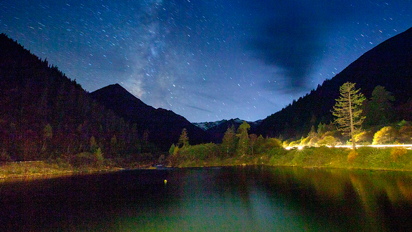 水映山,山熏彩林,彩林邂逅星空。達古的秋天,是熱鬧的。