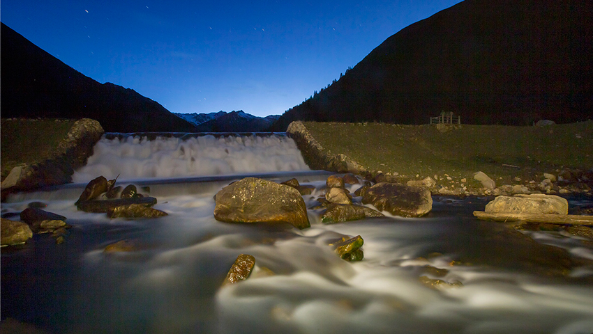 達古的夜晚是彩色的,與山間的彩林相得益彰。