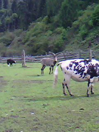 羊子與牦牛同處一場共同吃草,對生活在阿壩高原的人來說是司空見慣,不是新鮮事,但如果野生盤羊跑在牧家近牧場中與牦牛一道共同吃草呢?那絕對是新鮮事。像這樣的新鮮事,在達古冰山景區洛格斯牧場處(洛格斯神山觀景點處),至今年開春以來時有發生,成景區一道獨特的風景。