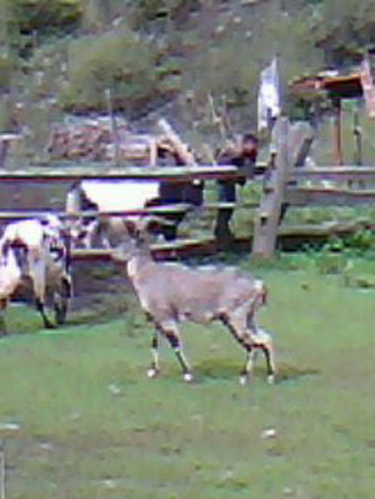 ?盤羊,俗稱大角羊、盤角羊,國家二級保護動物,是典型的山地動物,喜在半開曠的高山裸巖帶及起伏的山間丘陵生活,分布海拔在3500米至5500米左右,常以小群活動,每群數量不多。其視覺、聽覺和嗅覺敏銳,性情機警,稍有動靜,便迅速逃遁。屬瀕臨滅絕的珍稀保護動物。在達古冰山景區,棲息著153種野生動物,有國家一級保護動物——金絲猴、國家二級保護動物藏酋猴、盤羊、藏酋猴,羚羊、羚牛等。景區至2003年開發建設以來,管理局是十分注重景區動植物資源保護,一是經常深入景區三達古村、景區施工隊伍中宣傳有關動植物資源保護方面法律法規,增強景區居民和施工人員保護野生動物意識;二是在景區入口設卡,阻止偷獵盜獵人員進入,檢查偷獵盜獵運輸;三是聯合黑水林業公安加大景區巡查,嚴防翻山入境偷獵盜獵,對偷獵、盜獵、販賣的予以嚴厲打擊。通過開展大量卓有成效的工作,景區職工和居民保護野生動植物資源意識得到大大增強,偷獵盜獵現象得到有效遏制。近年來,景區國家一級保護動物—金絲猴時有出沒,在景區高半山下雪后成群結隊的金絲猴經常下山在林間嬉戲,可視率大大提高。而國家二級保護動物—藏酋猴更是“膽大”,經常成群結隊下山在景區公路上覓食,并與游客嬉戲。今年以來,景區國家二級保護動物盤羊、藏酋猴,羚羊、羚牛等珍惜動物也不甘寂寞,大白天時常下山到河邊喝水,到景區居民牧場與牦牛一道分享綠油油的青草。6月20日下午,幾名來自香港的游客在景區“邂逅”羚牛并拍下照片。6月25日,達古冰山景區管理局保護處工作人員在景區洛格斯牧場巡查時親眼目睹一只野生盤羊夾雜在牦牛群中與之一道共享綠油油的青草,并用手機記錄了它們和平相處照片。如今,景區野生動物的頻頻出現成為景區一道獨特的風景。