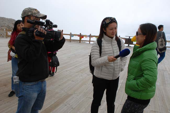 在4860米的冰山腹地,離家的游客在鏡頭前訴說(shuō)著對(duì)親人、朋友的中秋祝福。