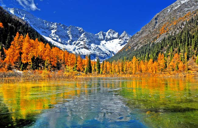 夏登冰山清涼界、秋入彩林五色海,秋天,黑水冰山紅葉彩林具有三大特點:一是游覽面積大。冰山彩林、卡龍溝彩林、奶子溝彩林等游覽面積達3000多平方公里。二是持續時間長,從9月底持續到11月初;三是觀賞性強,五彩繽紛的樹葉,在高海拔和低海拔之間交替上演,山頂白雪皚皚,山下姹紫嫣紅。