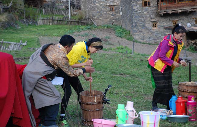 金秋十月,達古冰山景區(qū)逐漸進入彩林觀賞季,它像是畫家打翻了調(diào)色板,色彩眩目得讓人心醉。在這彩色畫廊環(huán)繞中的達古藏寨里,四位女星以普通藏家“媳婦”的身份,彼此為鄰,共同生活、勞作。拍攝期間,三達古村民的熱情好客、淳樸善良也深深打動了幾位大明星和攝制組。幾位大明星更是入鄉(xiāng)隨俗,和“家人”一起彈起動聽的弦子,跳起豪邁的鍋莊。福布斯中國名人榜第11位,F(xiàn)HM “全球百大性感美女”第一名的臺灣著名藝人林志玲初到達古冰山景區(qū),被景區(qū)如畫般的美景所感染,感慨道,在這里生活簡直太好了,景色太漂亮了。
