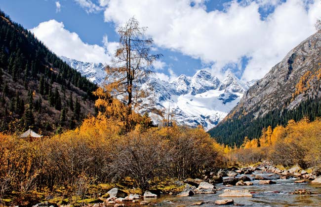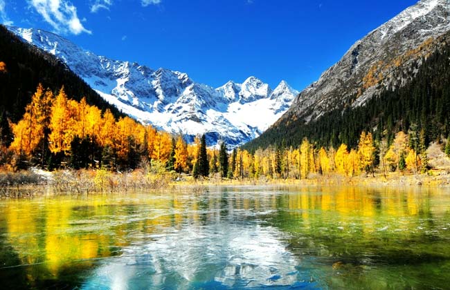 達(dá)古冰山冰山景區(qū)彩林觀賞時間:10月10日至11月20日。