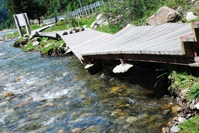 ? ? ? ??達古冰山景區于2003年開始開發建設,景區公路邊坡、部分湖泊邊坡地質結構不穩,易滑坡還客觀存在,對此,管理局領導是高度重視,及時成立景區汛期安全專項檢查領導小組進入景區并啟動了《達管局防汛度汛應急預案》。