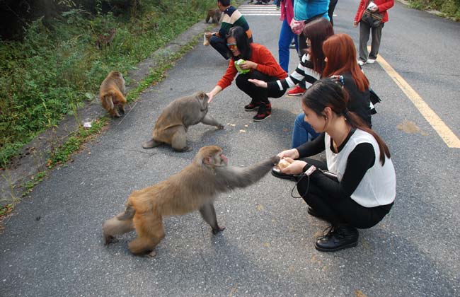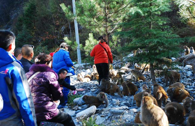 記者從達古冰山景區保護處了解到,每年冬春兩季,山上被茫茫白雪覆蓋著,藏酋猴都會下山來覓食,并在金猴海附近停留約5個月,景區工作人員也會在山上食物稀少的時候,定期為藏酋猴投食。由于達古冰山管理局對野生動植物的悉心保護、馴養,近幾年,山上開始下雪了,藏酋猴就會習慣性到觀景臺附近找工作人員要食物。