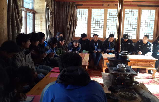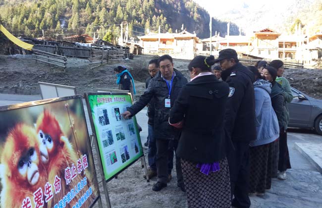 工作組一行采取以會代訓的方式,向各管護站職工宣講了《森林法》、《野生動物保護法》、《四川省森林防火條例》、《自然保護區管理條例》等法律法規,并當場組織管護站職工進行知識搶答、案例分析和技能操作演示。針對保護區村民、施工人員和游客,工作組采取散發宣傳資料、懸掛橫幅、擺放宣傳展板等方式宣傳《野生動物保護法》、《森林法》和《四川省森林防火條例》等相關法律、法規,使廣大村民、施工人員和游客進一步增強了保護生態意識和法制意識。