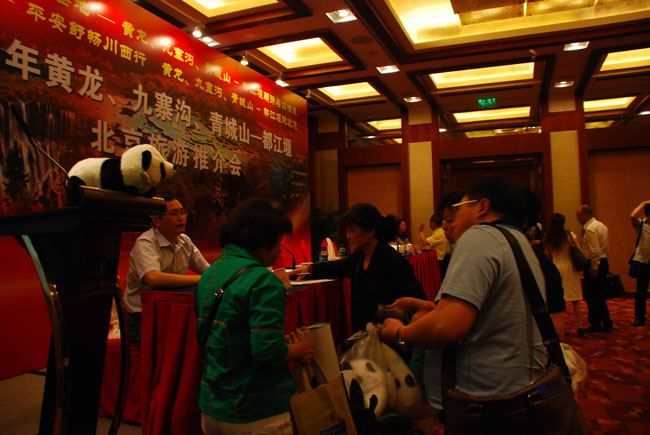 ? ? ? ? 5月22日,夢想圣地-黃龍、九寨溝、達古冰山、都江堰“期待與你相遇”旅游推介會在北京國際飯店會議中心舉行,推介會上,達古冰山景區代表就景區的地理位置、景區有什么、景區的線路和門票價格等幾方面,以觀看視頻、PPT展示、現場講解等方式,向首都北京的新聞媒體和旅行商社作了詳細推介,推介會后,首都北京的媒體和旅行商紛紛提問咨詢達古冰山有關情況,推介會氣氛活躍、效果良好。