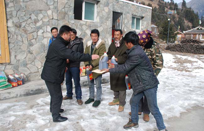 2014年12月27日,達古冰山管理局局長周全福、副局長仁青一行到三達古村開展新年送溫暖活動,周全福局長代表管理局向三達古村送上新年祝福。