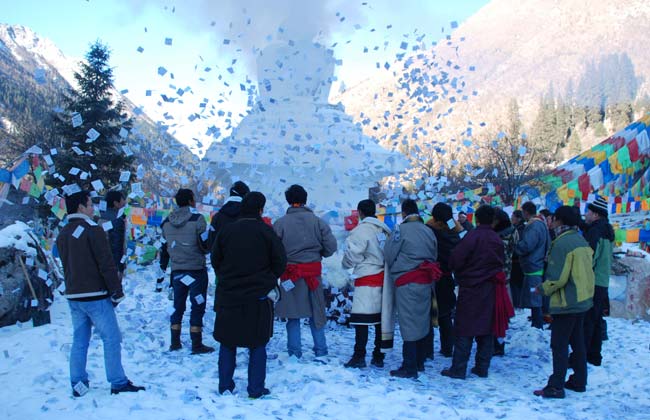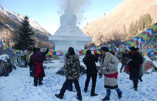 為了讓眾多游客參與體驗黑水藏民族獨特的民俗文化,2015年1月1日,達古冰山景區在洛格斯圣山舉行盛大新年祈福活動。