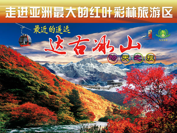 金秋時(shí)節(jié),置身于達(dá)古冰山,漫山的彩林讓人窒息、陶醉。達(dá)古的紅葉面積之大,層次之豐富,勘稱亞洲之最。中國(guó)著名旅游專家錢振越先生感慨地說(shuō):我在全國(guó)各地找紅葉,終于在黑水找到了。達(dá)古冰山景區(qū)是八十里彩林核心區(qū)域,它觀賞性強(qiáng),彩林持續(xù)時(shí)間長(zhǎng),紅葉在高海拔和低海拔之間交替上演,山頂白雪皚皚,山下姹紫嫣紅;宛如童話仙境。每年的9月至11月,達(dá)古冰山都將舉行為期兩個(gè)月的“冰 雪 彩林”旅游狂歡季。