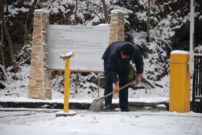 工作人員清掃路面積雪