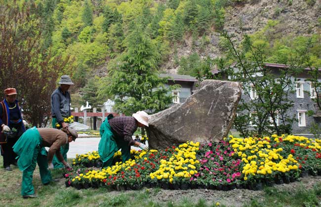 為進(jìn)一步營造美麗、和諧的節(jié)日氛圍,給游客創(chuàng)造優(yōu)美、舒適的旅游環(huán)境,在“五一小長假”到來之際,達(dá)古冰山管理局購買了一串紅、萬壽菊、牽牛等約16000株花卉對景區(qū)游人廣場進(jìn)行裝扮。同時,對景區(qū)洛格斯朝圣之路的破舊經(jīng)幡進(jìn)行更換。目前,裝扮后的景區(qū)游人廣場春意盎然,鳥語花香。節(jié)日氛圍十分濃厚。