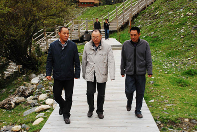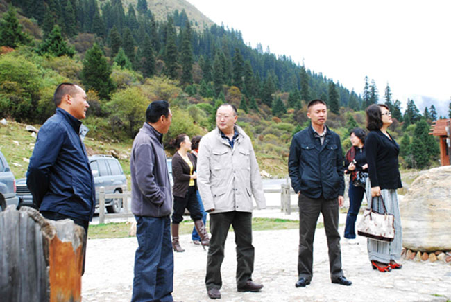 ? 9月25日,四川省十一黃金周旅游市場和安全檢查第三檢查組到達古冰山景區檢查工作,達古冰山景區管理局副局長仁青、黑水縣人民政府副縣長朱平、阿壩州旅游局副局長嚴昌瓊、黑水縣旅游綜合執法局、阿壩大冰川旅游有限公司等相關單位負責人陪同檢查。