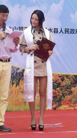 ????? 尤其值得關(guān)注的是“紅葉妹妹”從此華麗轉(zhuǎn)身,被中國(guó)第一彩林——黑水?達(dá)古冰山相中。9月22日,達(dá)古冰山景區(qū)在成都舉行的“冰?雪?彩林”旅游狂歡季的啟動(dòng)儀式上,“紅葉妹妹”現(xiàn)身活動(dòng)現(xiàn)場(chǎng),并被達(dá)古冰山景區(qū)管理局授予“達(dá)古冰山彩林妹妹和環(huán)保宣傳員”榮譽(yù)稱(chēng)號(hào)。“紅葉遍地有,彩林才是王,要宣傳就要占領(lǐng)制高點(diǎn),代表我們中國(guó)第一彩林,就要有中國(guó)第一的霸氣”,據(jù)達(dá)古冰山管理局工作人員透露,景區(qū)相中“紅葉妹妹”并欲將其打造為景區(qū)的彩林旅游狂歡季的形象代言人。至此,自發(fā)的宣揚(yáng)環(huán)保、關(guān)注冰山的行為藝術(shù)被貼上了“正統(tǒng)”的標(biāo)簽。