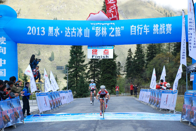 補充:2013黑水•達古冰山“彩林之旅”自行車挑戰賽,獲得第一名的是49號的漆懷能,第二名38號的張含,第三名34號的尹晨鐘。