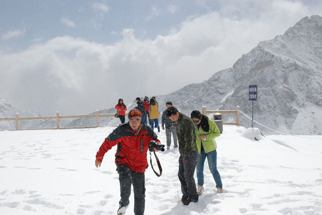 游客在海拔4860米的冰山觀景臺(tái)