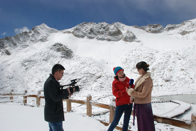 根據(jù)四川氣象局發(fā)布的有關(guān)黑水達(dá)古冰山紅葉彩林觀賞日期,(10月1日至11月10日).近日,四川電視臺(tái)節(jié)目拍攝組一行來(lái)到達(dá)古冰山景區(qū)進(jìn)行采風(fēng),就黑水-達(dá)古冰山一線旅游區(qū)域“吃、住、行、游、購(gòu)、娛”等方面進(jìn)行了采訪拍攝,尤其對(duì)達(dá)古冰山國(guó)際大酒店(五星級(jí)酒店)將在10月2日正式試營(yíng)運(yùn)進(jìn)行了全面采訪。