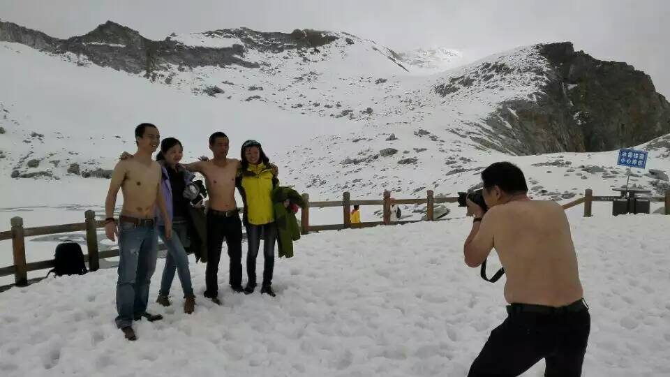 6月22日,端午小長假的最后一天,不少來自成都、重慶等地的游客乘坐全球第一高海拔的旅游觀光索道,登上達古冰山景區4860米的雪山之巔,賞冰玩雪,歡快撒野。部分游客還赤裸上衣,在冰山上“洗雪澡”,盡情享受清涼暢快的感覺。