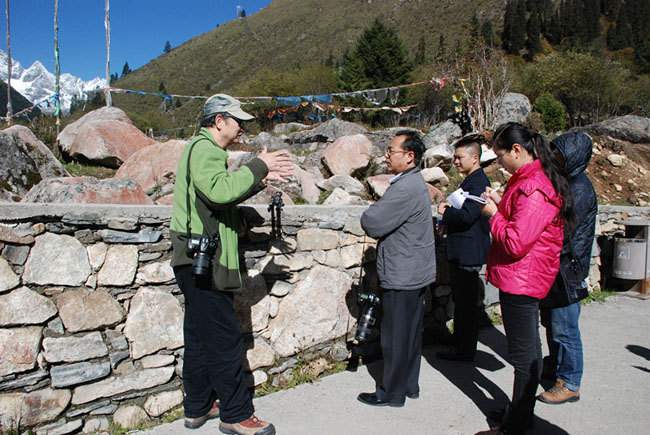 2013年9月27日,中國科學院山地研究所研究員、四川省科學探險協會副主席、著名冰川專家張文敬受邀來到達古冰山景區,在景區工作人員的陪同下深入洛格斯徒步觀賞區、冰川觀賞區,以詼諧幽默的語言向大家講解冰川地質地貌的各種奇觀和壯麗。
