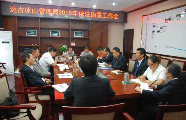 2015年7月23日,達古冰山管理局在三樓第一會議室組織召開2015年依法治景工作會議,出席會議的有局領導班子成員、各處室負責人和大冰山公司負責人。