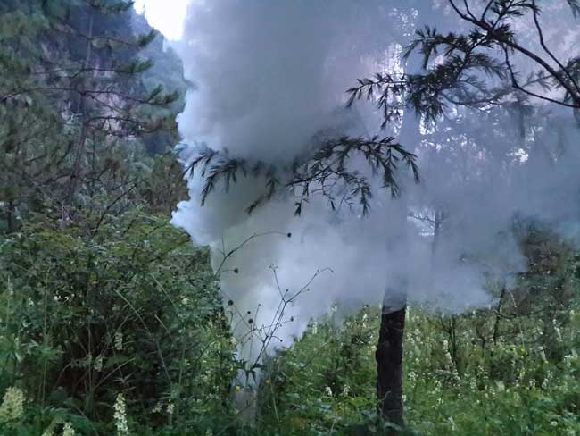 為切實搞好保護區森林病蟲害防治工作,確保轄區內森林資源及生態安全。7月30日,管理局保護處工作人員深入林區放熏“百菌清煙劑”。
