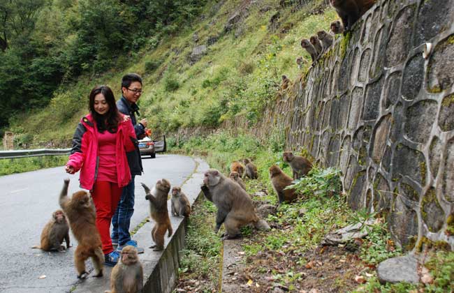達古冰山景區藏酋猴體形較為粗大,喜群棲,據景區保護人員觀察統計,大概有8群左右,大群可達百余只,每群有1-3只成年雄猴為首領。據專家研究,藏酋猴喜在地面活動,在崖壁縫隙、陡崖或大樹上過夜。喜歡"嗟來食",有“懶惰”的習性。為吸引藏酋猴下山,增添景區旅游景觀,達古冰山管理局一是加大景區環境保護力度;二是派專人喂養。經過多年努力,每到冬季,景區藏酋猴每年都會下山,在景區公里邊覓食、嬉戲,與游客親密接觸。今年,更是比往年提前40天下山。目前,在景區隨時可看見成群結隊的藏酋猴,并可與之親密接觸。