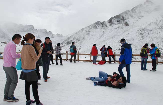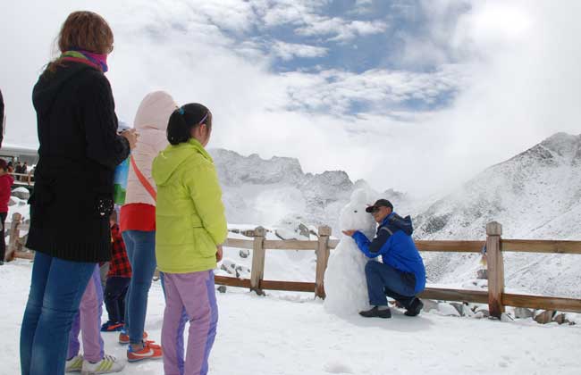 10月4日,達古冰山景區在經歷3號大雨的洗禮后,景區風景迷人,美輪美奐,景區滿山遍野云霧繚繞,雪山白雪皚皚,乘坐索道猶如騰云駕霧。站在達古之巔,感覺白霧在腳下穿行,白云觸手可及,猶如夢幻仙境。放眼群山,一片云海翻騰,景觀震撼無比,讓無數游客流連忘返。在景區4860米索道上站觀景臺,無論老人還是小孩,堆雪人、打雪仗、玩雪球、品白雪等場景隨處可見。蘇州游客陳先生是蘇州足跡戶外俱樂部推薦過來的游客,一行35人,對達古冰山的美,陳先生對記者連聲稱贊,說:“達古冰山—美哉、壯哉”。重慶游客黃先生是慕名而來,一行8人,對達古冰山的美,連聲稱贊:NO.1。在景區藏酋猴觀賞區,活波可愛的藏酋猴也是景區美麗的風景線,觀猴喂猴深受廣大游客青睞。成都游客王女士在觀猴區觀猴喂猴時間長達2小時。連聲稱贊說:“達古冰山的猴子真的太乖了……”。