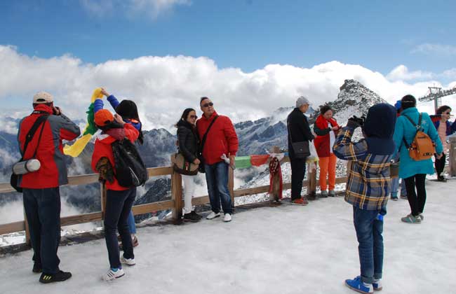 10月5日,國慶大假雖然過半,可到達(dá)古冰山景區(qū)旅游的游客熱度依然高漲。當(dāng)日,達(dá)古冰山景區(qū)陽光撥開云霧,直射大地,巍峨雪山在陽光照射下閃閃發(fā)光。站在達(dá)古之巔—海拔4860米一號(hào)冰川觀景臺(tái),仿佛藍(lán)天觸手可及,放眼群山,云海翻騰,雪山雄偉磅礴,綿延群山盡收眼底,“一覽眾山小”、“唯我獨(dú)尊”的豪邁情懷盡顯無疑。在雪山腳下,各種樹木綠色漸退,彩林奇觀也漸露出真容,與藍(lán)天、白云、雪山、云海交相輝映,儼然世外桃源。當(dāng)日,到景區(qū)旅游的游客達(dá)千人以上。為確保為游客服好務(wù),當(dāng)日,達(dá)古冰山管理局啟動(dòng)《2015年“十·一”黃金周暨冰山彩林旅游黃金季旅游保障預(yù)案體系》Ⅲ級(jí)預(yù)案,管理局和冰川公司共派出160余名職工于清晨7點(diǎn)深入景區(qū)一線開展游客疏導(dǎo)、旅游秩序維護(hù)、醫(yī)療急救等工作。通過努力,景區(qū)旅游秩序良好,無一起游客投訴事件發(fā)生。