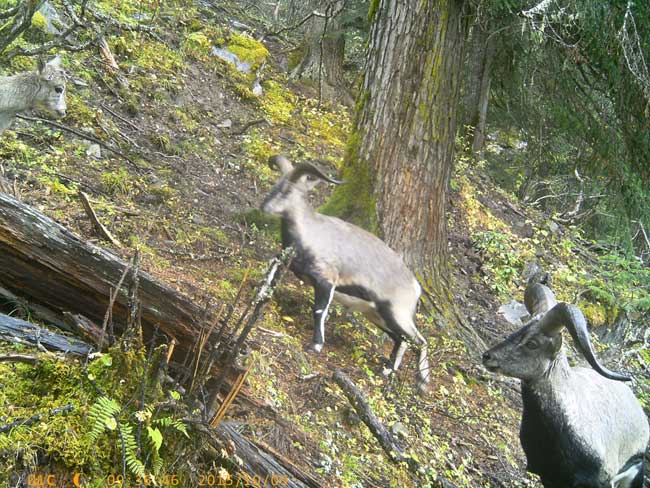 10月21日,達古冰山管理局在景區取回的紅外線監控儀中發現國家一家保護動物—金絲猴、羚牛,國家二級保護動物—巖羊影像。