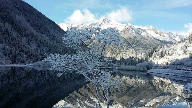 霜降以后,達(dá)古冰山景區(qū)時(shí)常大雪紛飛,整個(gè)景區(qū)進(jìn)入一片銀白色的世界。昨日(11月12日),景區(qū)再次降下大雪。“忽如一夜春風(fēng)來,千樹萬樹梨花開”。如今的達(dá)古冰山景區(qū)銀樹漫山遍野,景色美輪美奐,十分迷人。