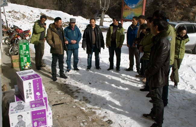 春節將至,為感謝相關單位對景區發展的大力支持,以及確保景區三達古村、單位幫扶村—黑水縣地漁村的貧困群眾、殘疾人等過上一個幸福、祥和的春節,1月23日、25日,達古冰山管理局局長周全福和副局長仁青冒著嚴寒,帶著全局職工的感謝以及關心與問候,分別到黑水縣公安、武警、消防,單位幫扶村—黑水縣地漁村、景區三達古村、景區各管護站看望慰問三老干部、貧困黨員、殘疾人和景區臨時管護人員、環衛工作人員等。