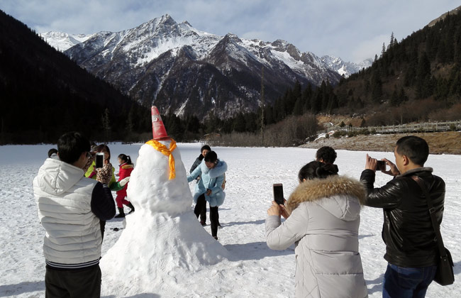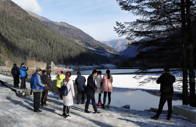 大年初二,達古冰山景區陽光明媚,晴空萬里,當日,景區迎來旅游小高峰。