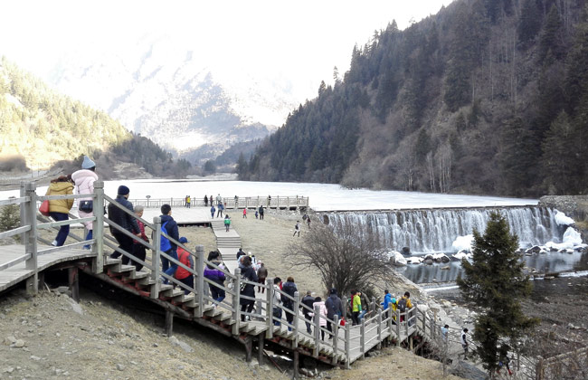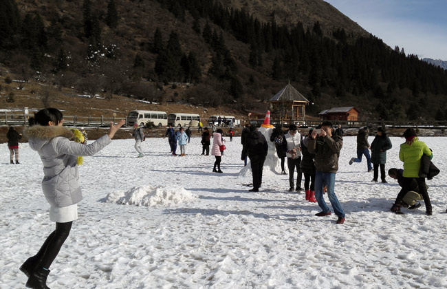 景區達古湖是景區經典景觀之一。每到冬季,湖面結冰厚度達到30厘米以上,是天然的滑冰場,在湖面上,堆雪人、打雪仗、溜冰任你任性、逍遙。