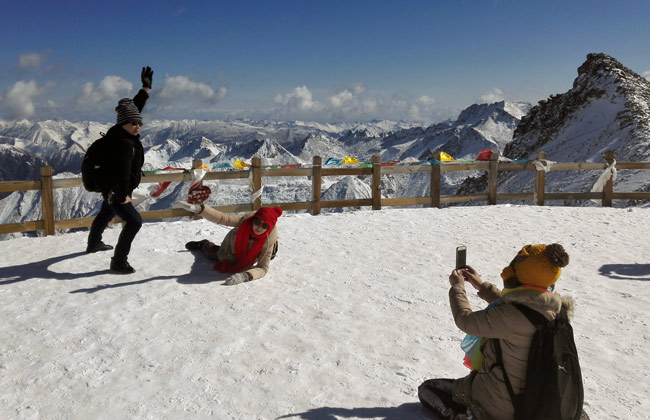 “雪山雄壯,天空蔚藍(lán),空氣香甜,真的是絕世美景,這是我近10年來(lái)每年春節(jié)外出旅游領(lǐng)略到的最好風(fēng)景。”以上是宜賓游客鄧先生2月10(大年初三)在達(dá)古冰山景區(qū)4860米冰川觀景臺(tái)對(duì)記者說(shuō)的話。