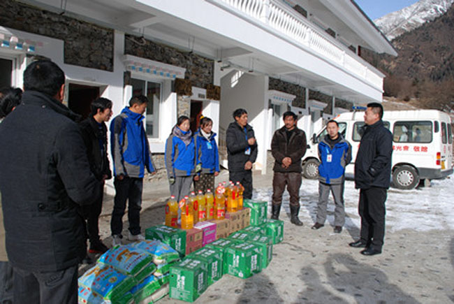 為認(rèn)真開展好“走基層、解難題、辦實(shí)事、惠民生”活動(dòng),夯實(shí)黨的群眾路線教育實(shí)踐活動(dòng)基礎(chǔ)。1月14日,達(dá)古冰山管理局局長(zhǎng)周全福同志連同黨委書記唐華祥同志、副局長(zhǎng)仁青同志及相關(guān)處室相責(zé)人深入景區(qū)一線,慰問(wèn)長(zhǎng)年奮斗在景區(qū)管護(hù)站工作人員及三達(dá)古村組干部,為他們送上了慰問(wèn)品。