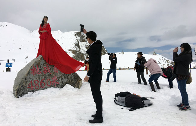 日前,達古冰山管理局聯合大九旅集團公司啟動了“純美之戀吻天之旅”主題婚紗拍攝活動,向全國公開征集5對情侶于4月22-24日來到達古冰山景區進行婚紗拍攝,此次旅拍之行全程免費,包括三天兩晚達古冰山五星酒店食宿。拍攝地點包括:達古冰山4860米之巔,達古湖畔,情人灘前,洛格斯棧道,德欽朗寺,達古冰山國際酒店。拍攝禮服有婚紗及藏式婚服。