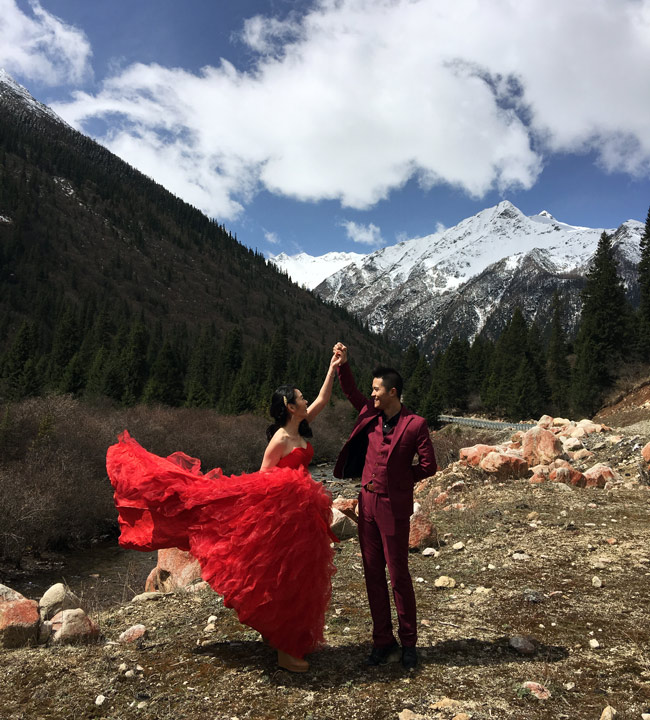 春季的達古冰山,冰雪浪漫唯美、山花絢麗爛漫,絕美的景色不僅吸引了無數游客,而且也受到了許多婚紗拍攝者的偏愛,達古冰山婚紗攝影活動的推出,給廣大網友提供了在4860米的冰山之巔、在巍峨神圣的洛格斯神山腳下、在靜謐幽美的情人灘前、在達古湖畔等地留下了愛的印記絕佳機會。