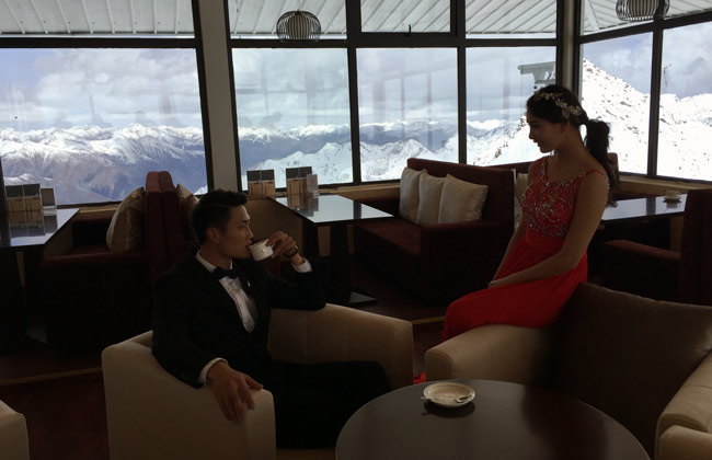 在這樣一個壯美圣潔的地方,開一個咖啡館會怎樣?記者從達(dá)古冰山景區(qū)了解到,冰山之巔的咖啡館最近開始試營業(yè)。記者因此借著“最美的景 最純的愛——帶著婚紗去達(dá)古”攝影活動去冰山咖啡館嘗新體驗了一番。這個咖啡館,目前是世界海拔最高的咖啡館。