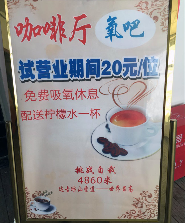 雖然是世界最高海拔的咖啡館,但消費卻很低,試營業(yè)期間,咖啡每位20元,可以免費吸氧,并且還送一杯檸檬水。五一快到了,去達(dá)古冰山游覽時,可以到這間世界海拔最高的咖啡館感受一下,看群山巍峨,云卷云舒,順便思考一下人生。攝影:子夜的曇、陳昌君
