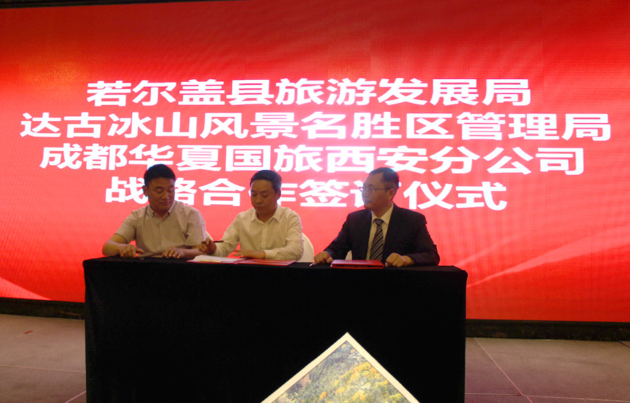 推介會上,若爾蓋縣旅游發展局、達古冰山風景名勝區管理局與成都華夏國旅西安分公司代表簽訂了戰略協議。6-10月,西安自駕俱樂部聯盟將多方緊密合作共同打造“游云端草原若爾蓋,登圣潔冰山達古峰”精品自駕線路。