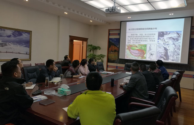 王世金博士專題講座題目為“典型海洋性冰川快速變化觀測研究”。主要講述了海洋性冰川與大陸性冰川的區別、冰川能量-物質平衡、影響冰川快速變化的因素并以玉龍雪山白水河1號冰川為例,講述了白水河冰川研究的現狀及白水河冰川退縮研究的成果等。會后,王世金博士在管理局主要領導的陪同下深入景區對達古冰山冰川旅游資源進行了實地考察。