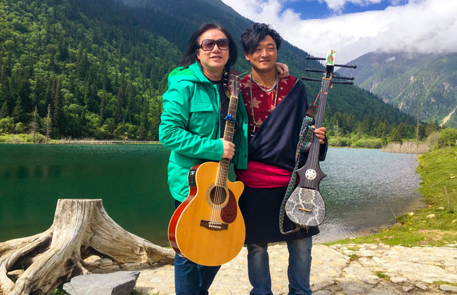 范老師和藏族歌手合影
