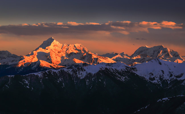 達古冰山景區系罕見的現代山地冰川景區。保護區面積632平方公里,其中游覽區規劃面積210平方公里,景區內冰川、雪峰、彩林、藏情、湖泊等資源豐富,共有13條冰川,冰川分布區210平方公里,核心面積119平方公里,冰面積6.04平方公里。景區內生物多樣性完整,垂直分布明顯,有野生植物1000余種;野生動物153種,川 金絲猴、羚羊、盤羊數10余種珍稀野生動物種群多、數量大、野外可視率高。達古冰川洋溢著歷史的沉淀,展現出一幅幅精美的民俗畫卷。冰川、高山湖泊、雪峰與青山綠水相映成趣;咂酒文化、(卡斯達溫)鎧甲舞、多聲部民歌與宗教信仰源遠流長,藏、羌民族服飾耀眼奪目。景區內有昌德雪山、達古雪山,1935年6月至1936年8月的一年零兩個月中,中國工農紅軍一、四方面軍近9萬人次,翻越這兩座大雪山后,在毛爾蓋召開了歷史上著名的“毛爾蓋會議”。達古冰山景區中分布著200多個古冰川湖泊,湖面積一萬平方米以上的湖泊有50多個,其中最大的是東措日月海,長1800米,寬300米,形似啞鈴狀,面積54萬平方米,像一顆巨大的藍寶石鑲嵌在雪域高原。在湖的四周古冰川漂礫石磧中生長著紅景天、雪蓮等高山植物群落。駐足觀望,時光在這里停滯,聲音在這里消失,偶爾山風拂過,湖面微波蕩漾,才又重回現實,感悟到生命的存在。景區先后評為最具有吸引力新美景、四川最佳度假旅游目的地,最佳紅葉觀賞目的地,中國彩色冰川—冰雪天堂,攝影天堂等稱號,被著名作家阿來譽為“最近的遙遠”。