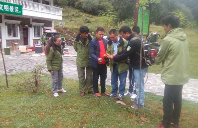 在現場,成都森茂森林消防器材公司的技術人員首先對景區損壞的消防器材進行了維修。然后詳細向景區工作人員講解了高壓水泵、風水滅火機、高壓細水霧滅火機等消防器材工作原理、具體構造以及保養知識和使用方法,并現場指導景區工作人員進行操作實踐。
