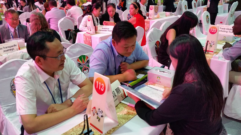 此次展會也專門設立了一對一交易洽談區,可輪流會晤來自亞洲、歐洲、美洲、大洋洲等32個國家和地區的旅行商,向他們售賣旅游產品。