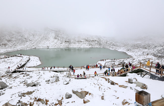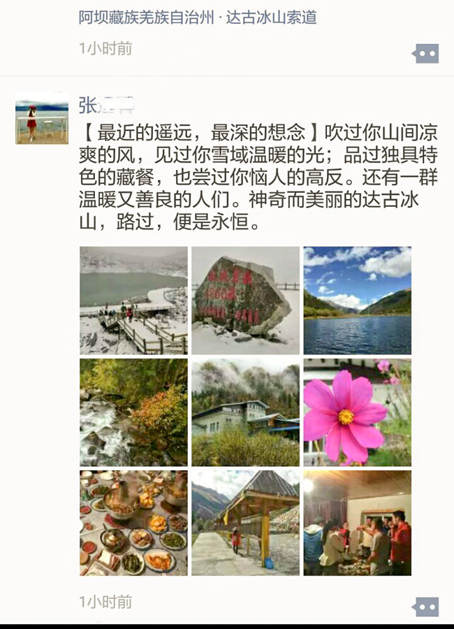 今天,達古冰山景區在經過3號、4號、5號連續3天晚上的降雪后,景區索道上站雪景壯美,站在達古之巔,白云觸手可及。同時,隨著時間的推移,景區各種樹木綠色漸退,各種色彩競相登場,放眼景區,映入眼簾的是一幅幅彩色畫廊,讓進入景區的游客流連忘返。對景區的景色,攀枝花游客張小姐在微信朋友圈說:“最近的遙遠,最深的想念,吹過你山間涼爽的風,見過你雪域溫暖的光;品過獨具特色的藏餐,也嘗過你惱人的高反。還有一群溫暖又善良的人們。神奇而美麗的達古冰山,路過,便是永恒”。